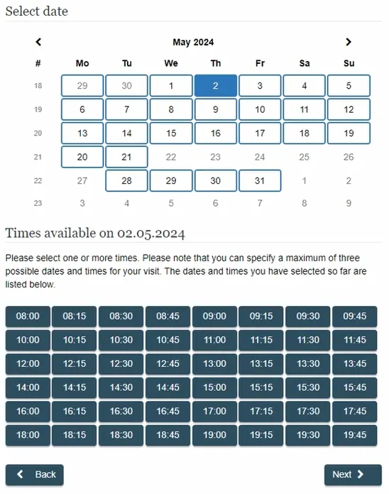 6. 방문할 날짜와 시간을 선택합니다.