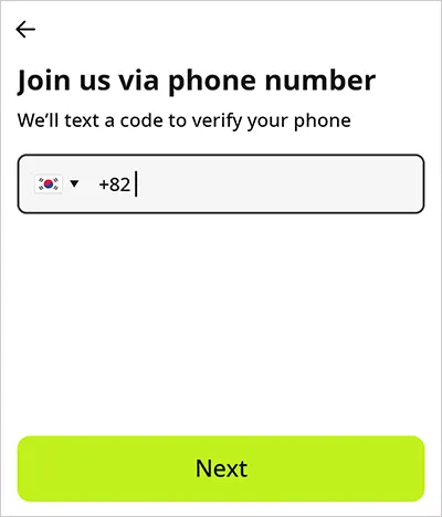 2 [Continue with phone(전화번호로 계정 생성)] 또는 [Continue with Google(구글 연동 계정 생성)] 버튼을 클릭합니다.