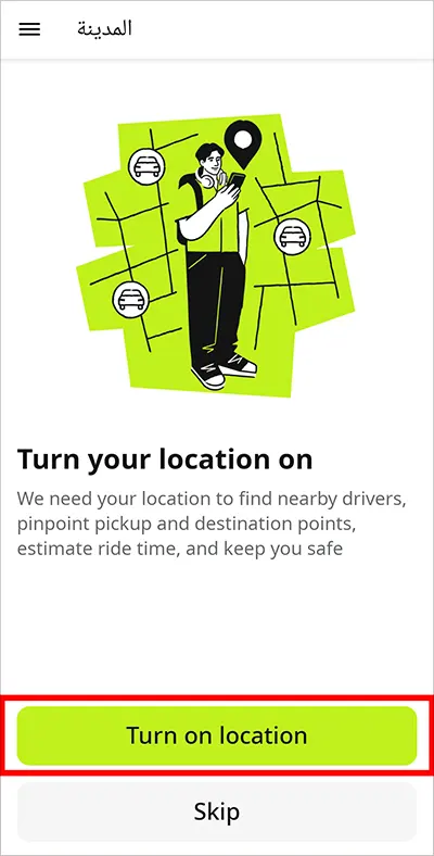 ※ Skip을 해도 출발지를 직접 입력하여 이용할 수 있으나, 정확한 픽업 위치 파악을 위해 켜두는 것을 권장합니다.