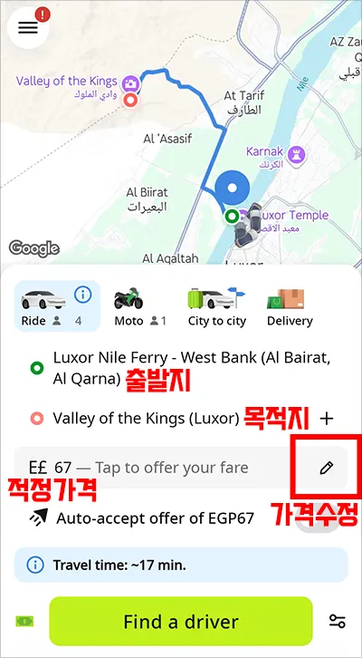 #이집트택시어플 #인드라이브이용방법