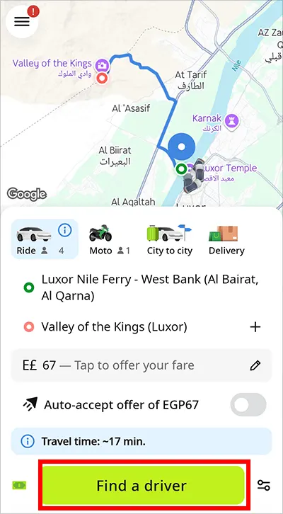 이집트에서 인드라이브(Indrive) 사용하는 방법