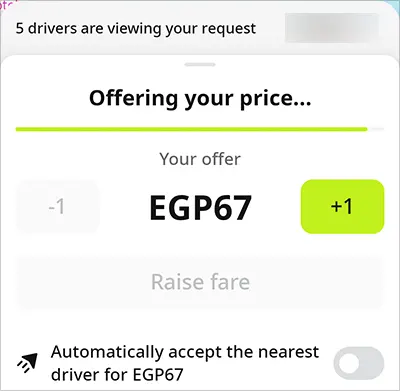 4 나의 요청을 보고 있는 기사의 수를 실시간으로 확인할 수 있으며, 대기가 길어지는 경우 대기 중에도 제안 가격을 수정할 수 있습니다.