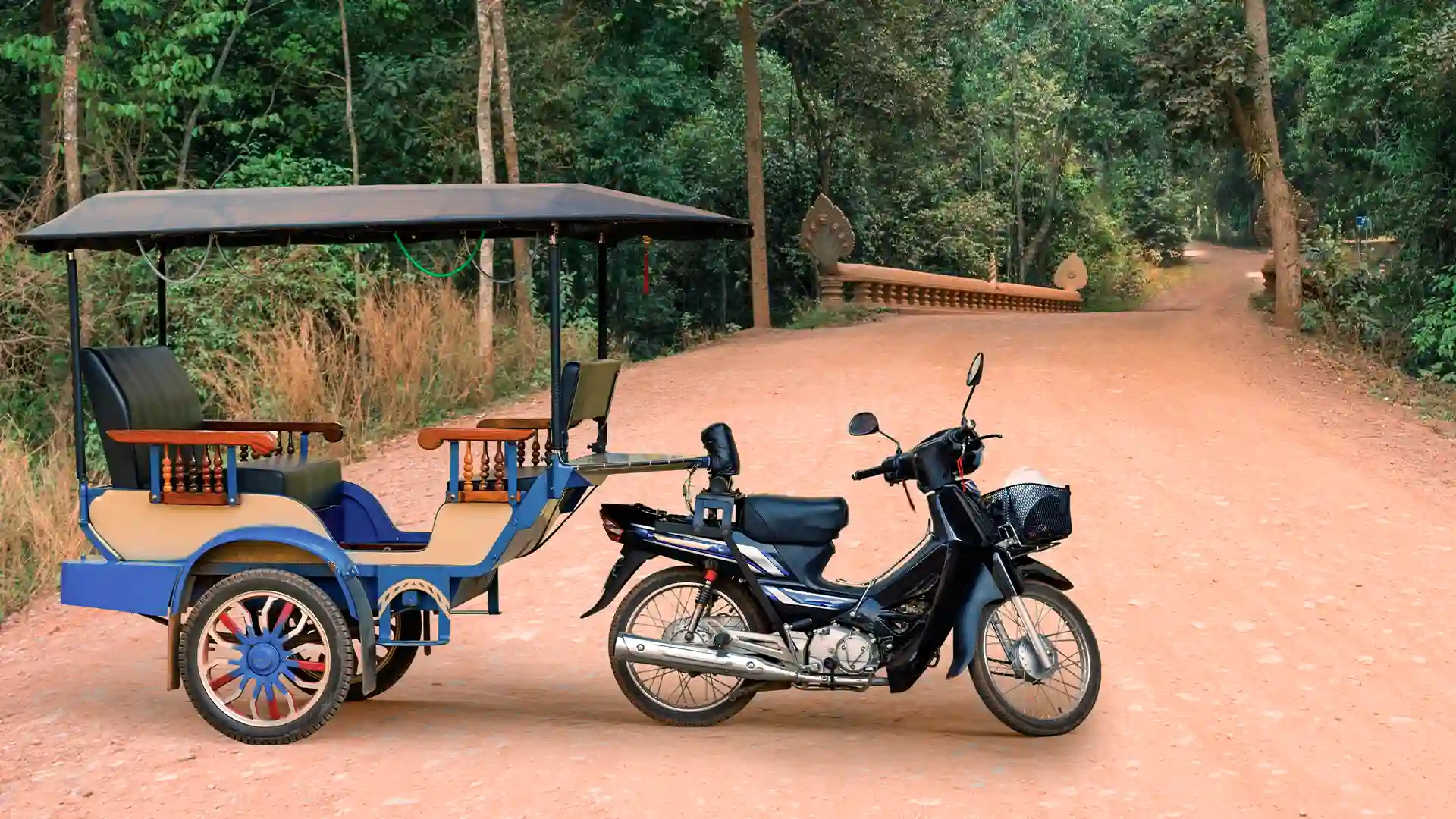 오토바이 뒤에 인력거를 단 형태로, 캄보디아 시내를 돌아다니다 보면 가장 많이 볼 수 있는 형태의 교통수단이죠!