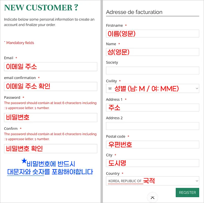 6 이미 계정이 있는 경우 로그인을 하고, 계정이 없는 경우 [NEW CUSTOMER?] 하단에 있는 양식을 기입하여 계정을 생성합니다.