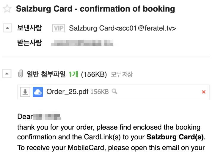 8 그러면 입력하신 Email로 'Salzburg Card'가 도착해 있을 텐데요.