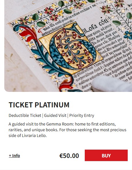 가장 비싼 티켓으로, 렐루 서점이 보유하고 있는 각종 희귀 도서들을 전시하고 있는 젬마 룸(Gemma Room)을 가이드와 함께 관람하실 수 있습니다.