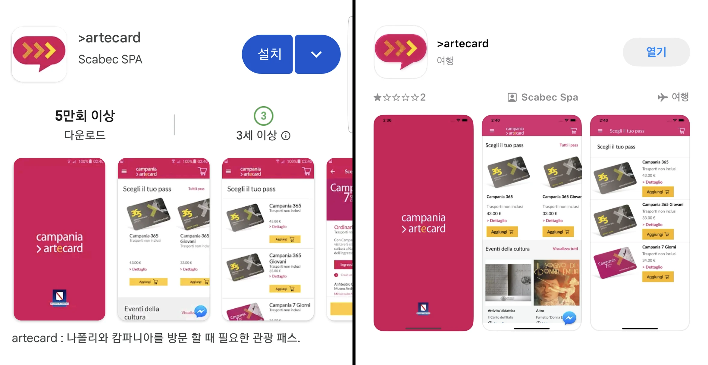 2) 캄파니아 3일권/7일권(Campania 3 / 7 days)