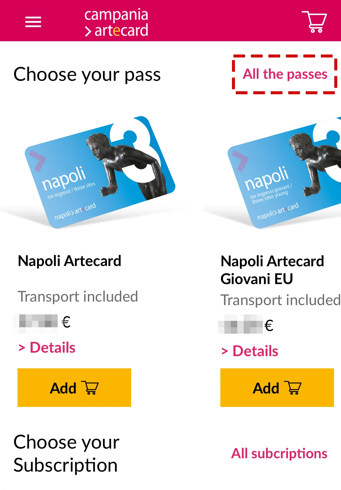 캄파니아 아르떼카드(Campania Artecard): 나폴리 여행 패스권