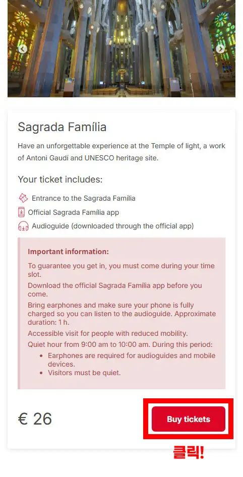 ① 사그라다 파밀리아 성당 입장권(Sagrada Família): 26 €