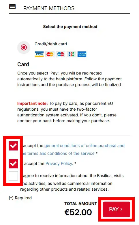 체크박스에 체크를 해야 PAY 버튼이 활성화됩니다. 총 3개의 체크박스가 있는데요, 첫번째는 약관 동의, 두번째는 개인정보 보호정책 동의 여부, 세번쩨는 광고 수신 여부입니다. 특별히 홍보성 메일을 받아보고자 하는 경우가 아니라면 세번째 체크박스에는 체크하지 말아주세요. 이어서 PAY 버튼을 클릭하시면 결제창으로 넘어갑니다.