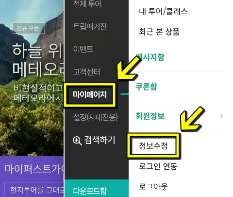 3 그다음 [마이페이지 → 정보수정]을 클릭합니다.