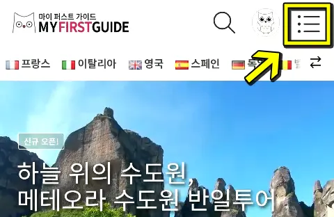 2 오른쪽 위에 메뉴 버튼(3줄 아이콘)을 눌러주세요.