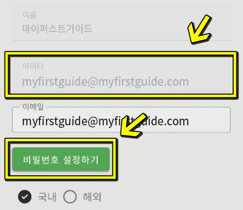 ※ 보통의 경우 아이디는 네이버 이메일(**@naver.com) 또는 구글 이메일(**@gmail.com)입니다.