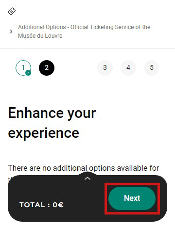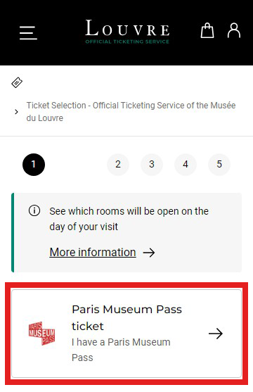 2 뮤지엄 패스 소지자는 [Paris Museum Pass ticket] 버튼을 누릅니다. 미소지자의 경우, 바로 3단계로 넘어가 주세요.
