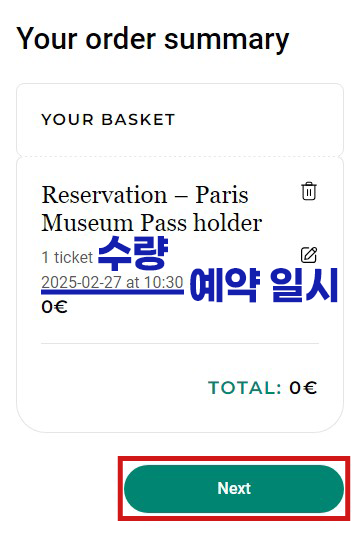 뮤지엄 패스를 사용하신 경우, 결제 없이 예약이 완료됩니다.