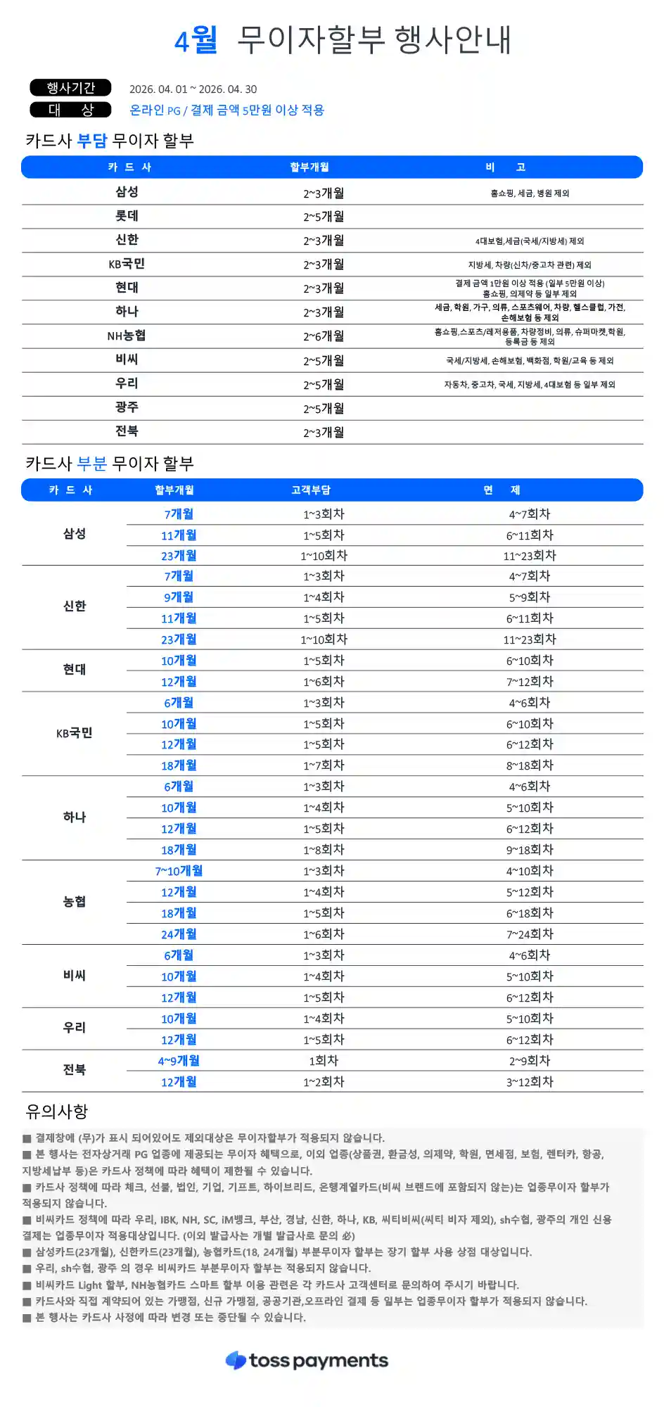 4월 신용카드 무이자 할부 행사 이벤트