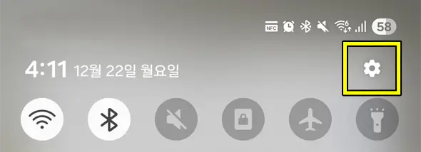 1) 어플리케이션(앱) 중 [설정]을 찾아 선택하거나, 상단바에 우측 상단의 [설정(톱니모양)]을 선택하여 어플리케이션을 실행합니다.