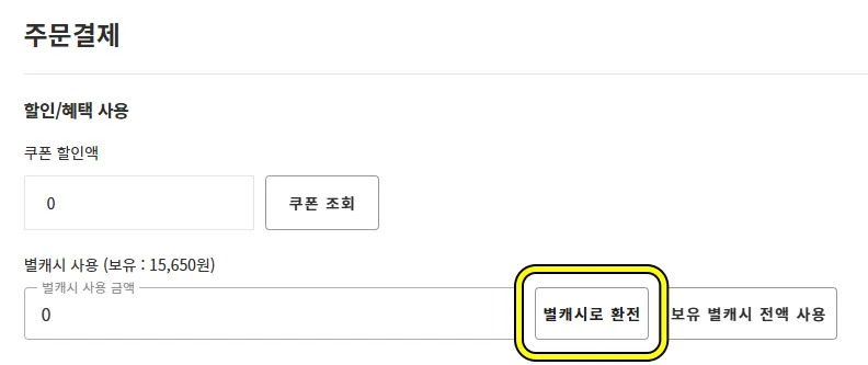 [별캐시로 환전하는 방법]