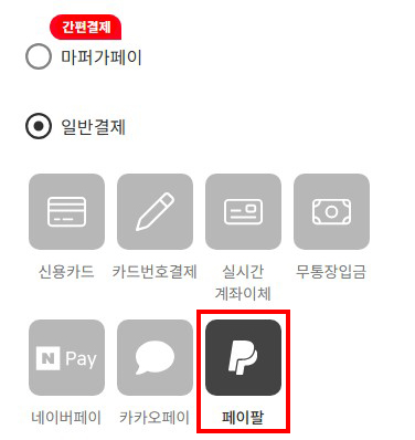 아니면 고객센터로 페이팔 결제 오픈을 요청주시면, 결제페이지에서 [페이팔 결제]를 클릭하실 수 있도록 적용해 드리고 있습니다.
