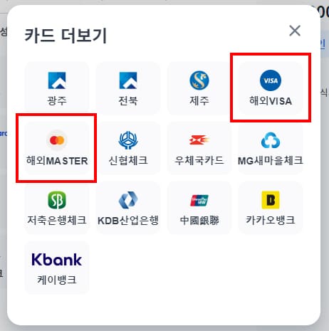 [방법1] 해외 VISA 카드 또는 해외 MASTER 카드를 이용한 결제 방법