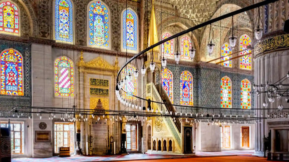 모스크 외관은 물론, 내부 벽면을 푸르게 장식하고 있는 이즈닉 타일까지 모두 설명 드립니다.