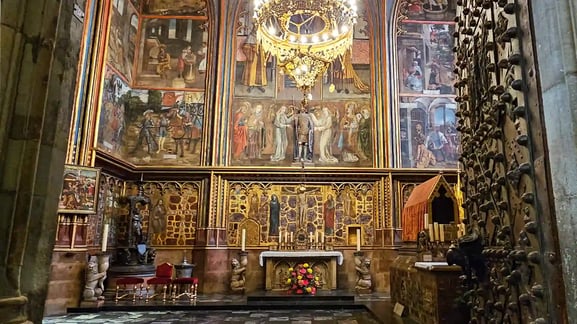 금과 보석으로 휘황찬란하게 장식된 바츨라프 예배당,