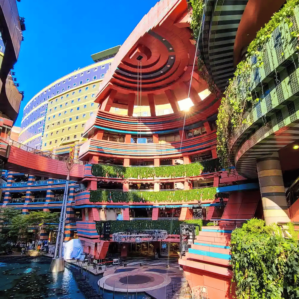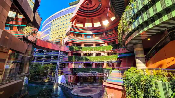 분수쇼가 이뤄지는 복합 쇼핑몰