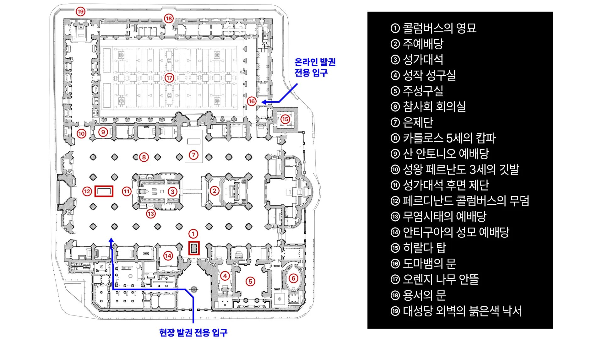 이외에도 한때 유럽에서 가장 높은 탑이었던 히랄다 탑과 세계에서 가장 큰 제단화 및 콜럼버스의 무덤까지.