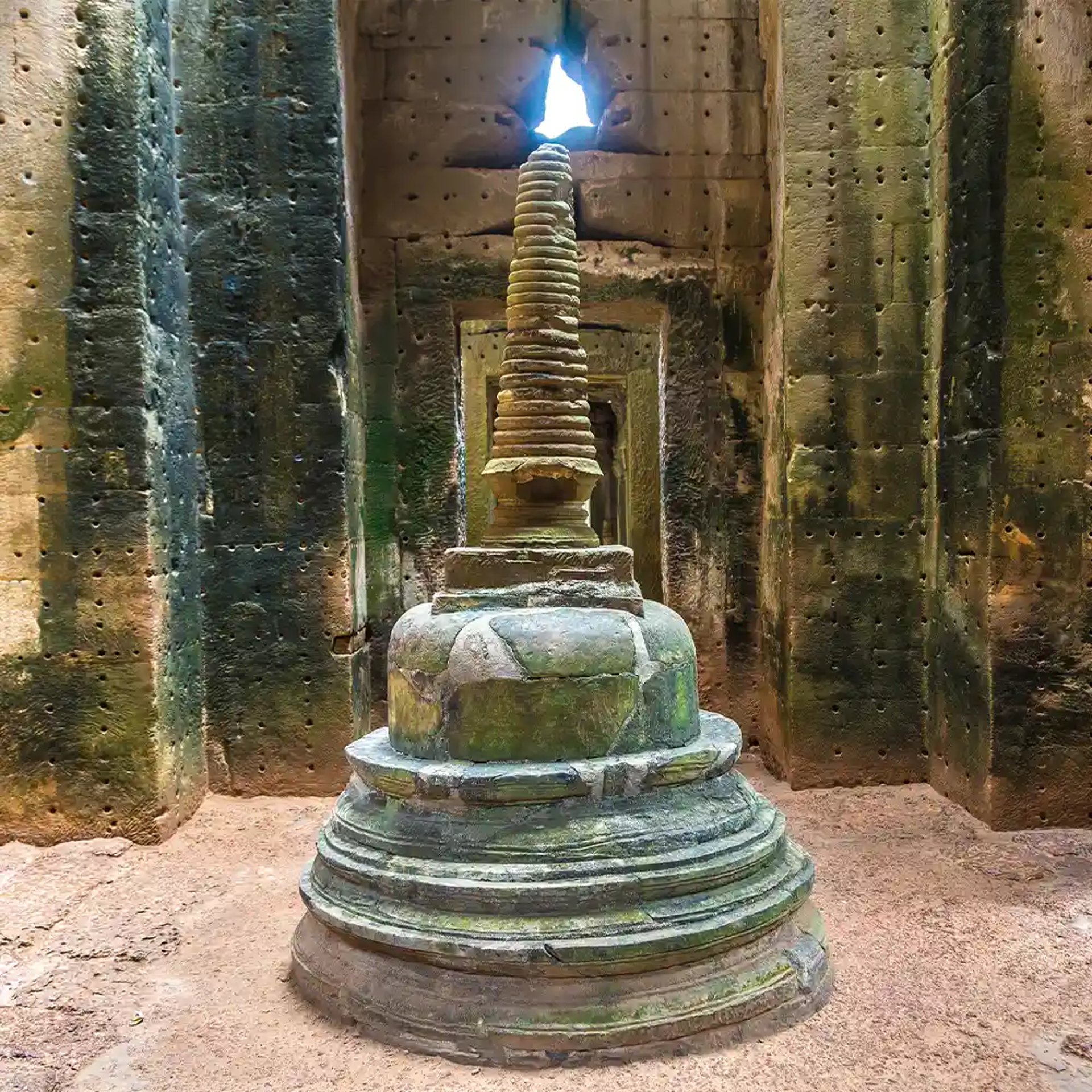 뾰족하게 솟은 스투파가 자리한 성소