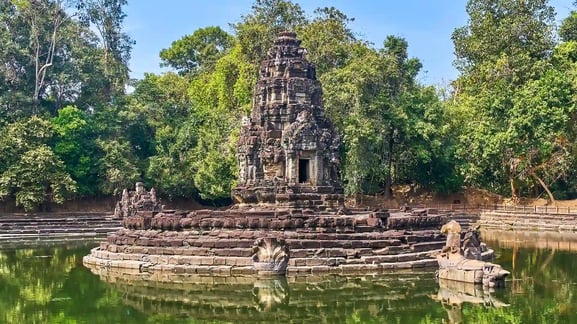이곳은 앙코르 왕조 최초의 불교 신자였던 자야바르만 7세의 종교를 반영해 불교 사원으로 지어졌는데요. 하지만, 불교의 모습만 가진 게 아니라, 힌두교의 모습도 가지고 있습니다.