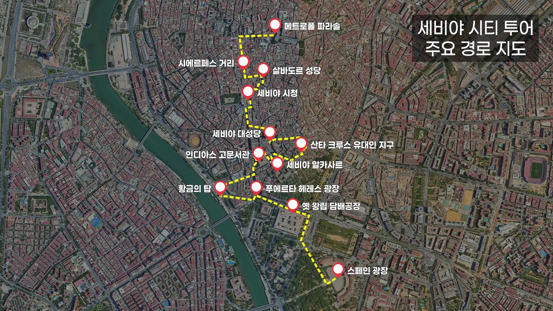 ※세비야 시티 투어에서는 세비야 알카사르와 세비야 대성당의 외부 관람만 진행합니다. 내부 관람은 세비야 알카사르, 세비야 대성당 단독 투어를 이용해주세요.