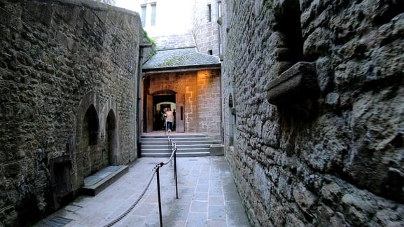 바닷가에 우뚝 솟아 있는 돌산으로 된 섬의 꼭대기에는 웅장한 모습의 수도원이 있고, 그 밑에 형성된 작은 마을을 견고한 성벽이 둘러싸고 있습니다. 그리고 평소에는 육지와 연결되어 있다가 만조가 되면 물에 잠겨 섬이 되는 신비한 지형을 가진 곳이죠.