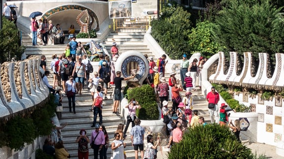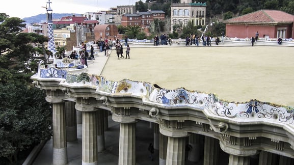 가우디의 의자 너머로 보이는 아름다운 풍경을 사진에 담아보세요.😆